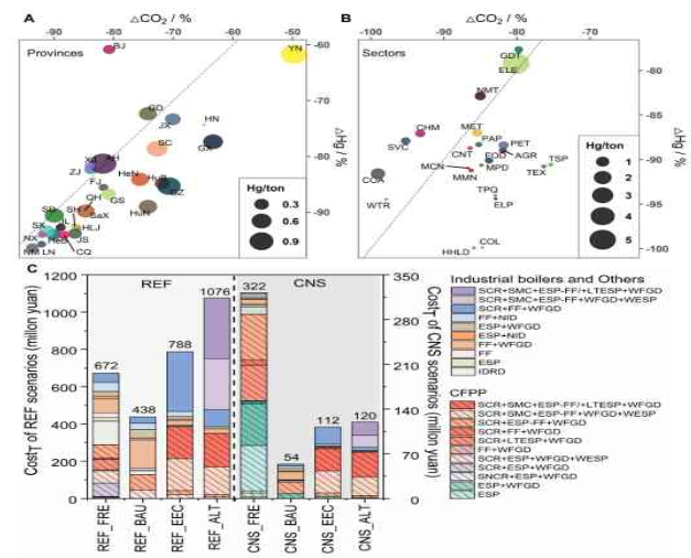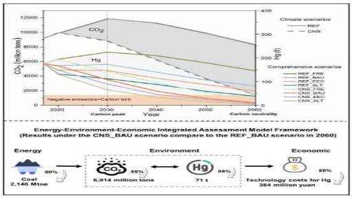 中国作为全球最大的发展中国家,面临着发展经济、改善民生、减污降碳多重挑战,迫切需要以较低的经济代价实现减污降碳协同增效。如何有效地利用协同减排措施来取得碳汞减排最佳效果,即如何以较小的成本有效地减少二氧化碳和汞排放仍是一个难题。本研究通过构建“能源-环境-经济”综合评估模型框架在省级层面探究气候、空气污染和汞减排政策的最佳实践组合,发现中国将碳中和政策与当前的空气污染控制政策相结合,是具有成本效益的协同减排路径,这将在2060年这一年减少6914百万吨(88%)的二氧化碳和71吨(88%)的汞排放,并将为中国节省3.84亿元的汞减排技术成本。