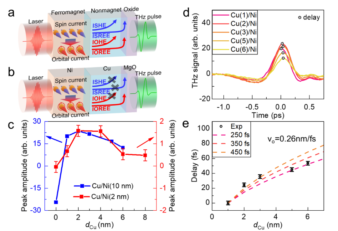 自旋/轨道-电荷转换概念图及Cu厚度对MgO/Cu/Ni的太赫兹发射的影响