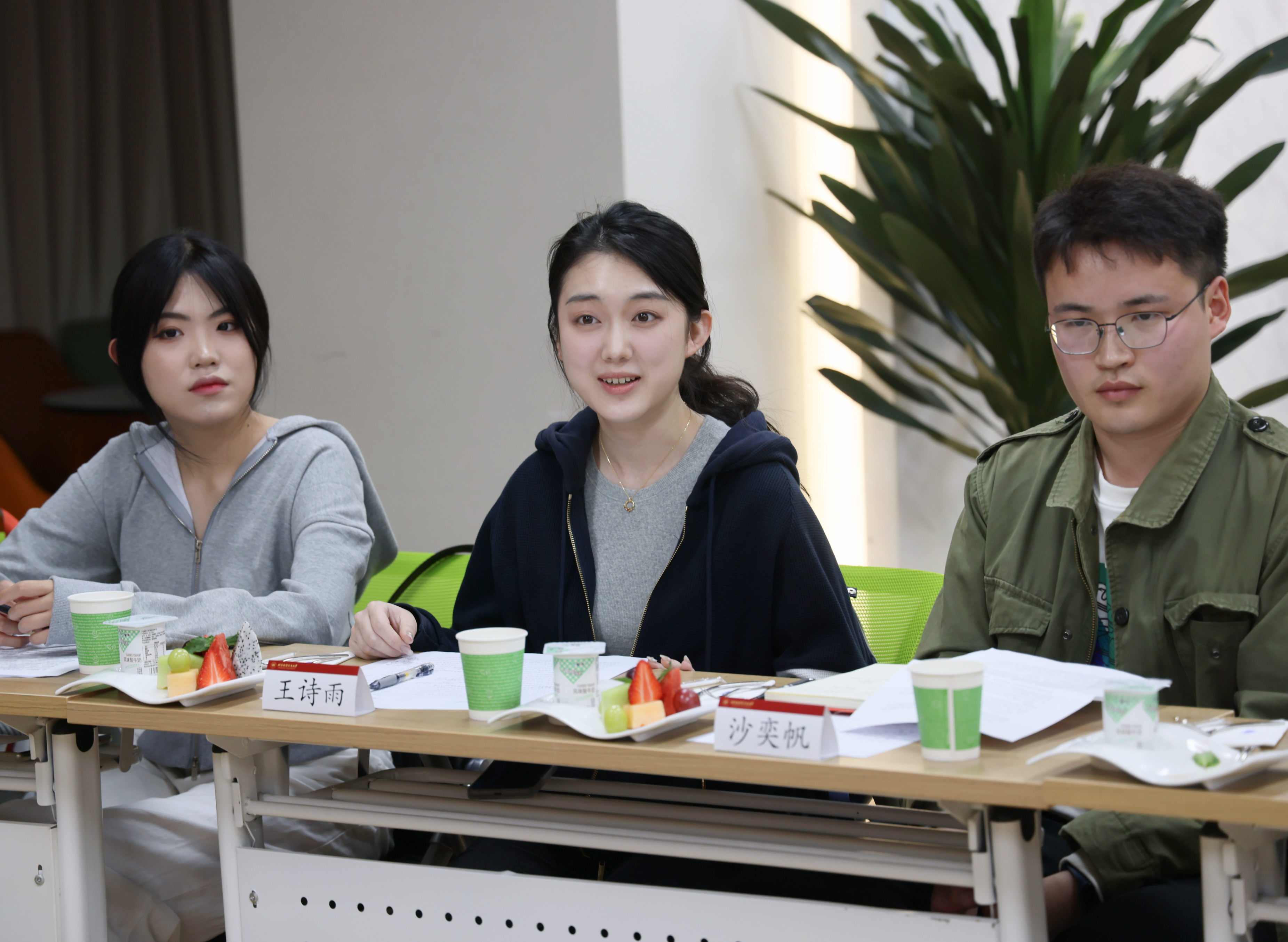 同学们踊跃发言,朱垚洁、茹兰雅结合个人上课体验,希望优化课程授课时长。魏亚东、薄丹雅表达了对学校丰富的奖助学金的感谢,希望加大对获奖学生榜样事迹的宣传力度。沙奕帆、熊梦宇分享了参加科创项目的经历。曾心蕊分享了数学基础课程的学习感受,希望加强引导学生应用数学解决实际问题。林钰琪、牛钰浩结合自身实习经历及职业规划,建议学校提供更加优质的职业生涯指导。赵宇轩谈到了有关提高课堂效率的思考,希望加强课堂纪律的监督管理。强鑫分享了关于博士研究生培养方案的思考。王诗雨分享了人工智能对于学习方式的影响。彭冯德提出了“科研课堂”设置的相关建议。王正楷、赵逍遥表示,作为学生干部,将促进学生组织充分发挥在学风建设中的积极作用,成为学校与学生间最为牢固的沟通桥梁纽带。