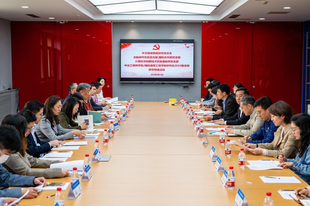 4月13日,外交部政策规划司党总支书记、司长苗得雨一行来校,与我校研究生院党支部、国际合作部党支部、计算机学院新技术实验室教师党支部、中法工程师学院/国际通用工程学院研究生2022级支部党员代表开展联学联建活动。校党委副书记程波,校长助理、研究生院常务副院长赵巍胜等出席并参加活动。此次活动也是双方开展学习贯彻习近平新时代中国特色社会主义思想主题教育的一次理论学习和调查研究实践。