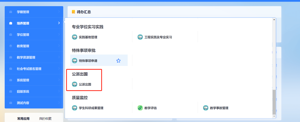 2023年我校“卓越远航”博士研究生国际联合培养基金第二批申报启动。计划2024年6月之前出国联合培养(重点支持前往:美国、英国、加拿大、澳大利亚、新西兰、瑞典、丹麦等国家)的全日制非定向学术型在读博士研究生请在研究生教育综合管理信息系统(新系统)填写公派出国申请(参考下图,申请年度选2023),并完成审核。
